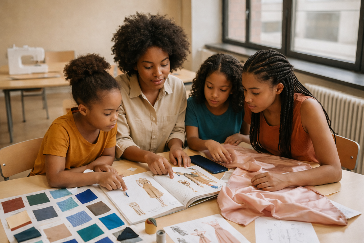 Stitch & Sew Studio is a creative program where youth explore the world of fashion through hands-on activities like sketching, sewing, styling, and design challenges. Students build confidence, learn new skills, and express their creativity while working toward a final runway presentation of their work.